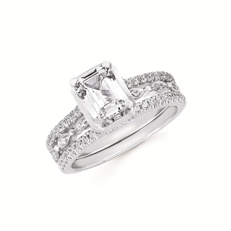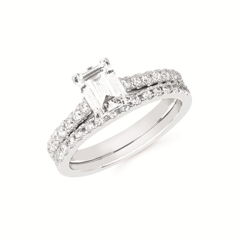 Classic Bridal: 1/4 Ctw. Diamond Semi Mount shown with 3/4 Ct. Emerald Cut Center Diamond...