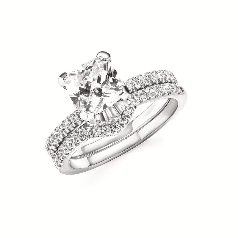 Forever Elegant™ 1/4 Ctw. Diamond Semi Mount shown with 2 Ct. Cushion Center Diamond in...