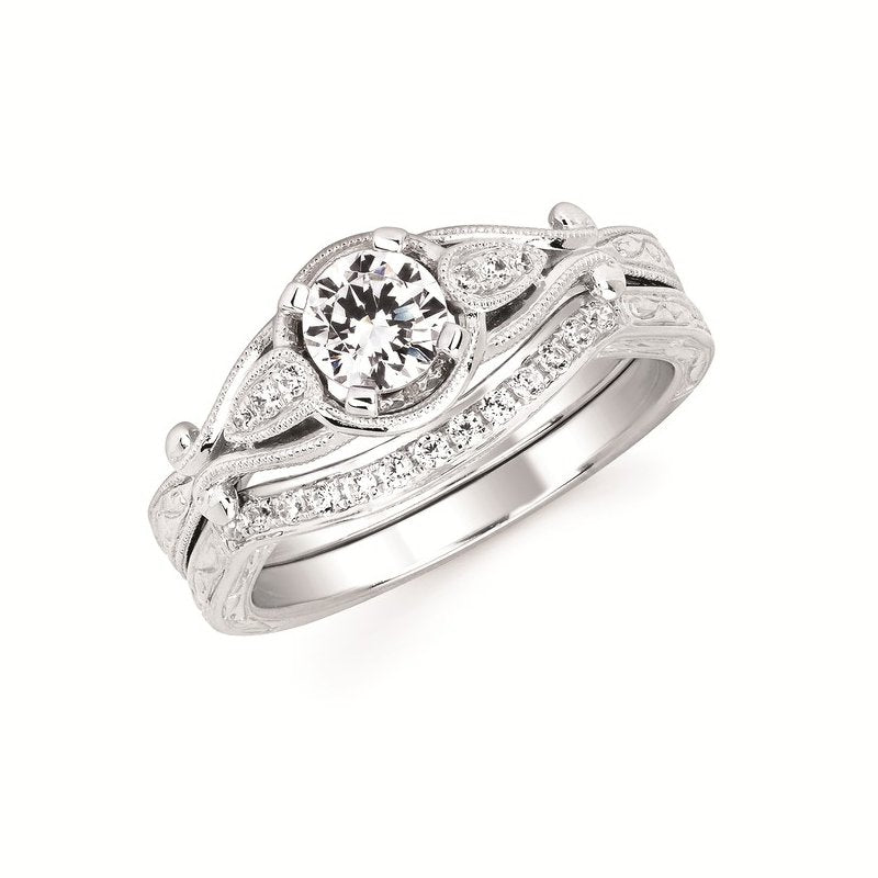 Classic Bridal: 1/3 Ctw. Diamond Semi Mount shown with 1/2 Ct. Round Center Diamond in...