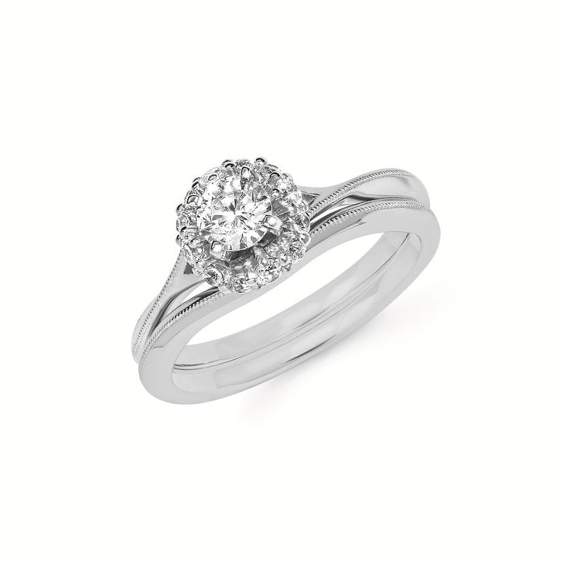 Halo Bridal: 1/2 Ctw. Diamond Halo Semi Mount available for 1-1/2 Ct. Round Center Diamond...