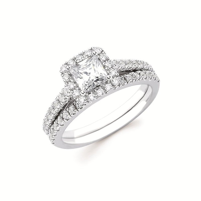 Halo Bridal: 1/3 Ctw. Diamond Halo Semi Mount available for 3/4 Ct. Princess Cut Center...