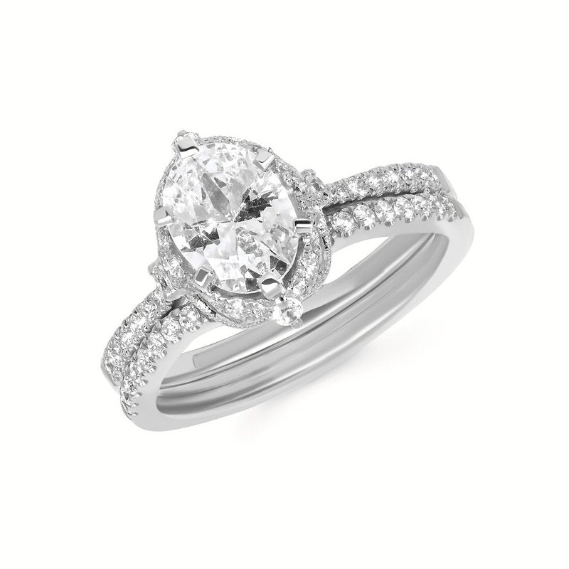 Forever Elegant™ 1/4 Ctw. Diamond Semi Mount shown with 1.50 Ct. Oval Center Diamond in...