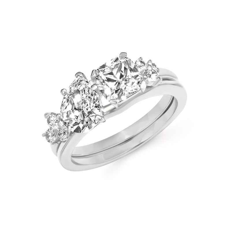 Forever Elegant™ 1/5 Ctw. Diamond Semi Mount shown with 1 Ct.Cushion and 1Ct. Pear Cut...
