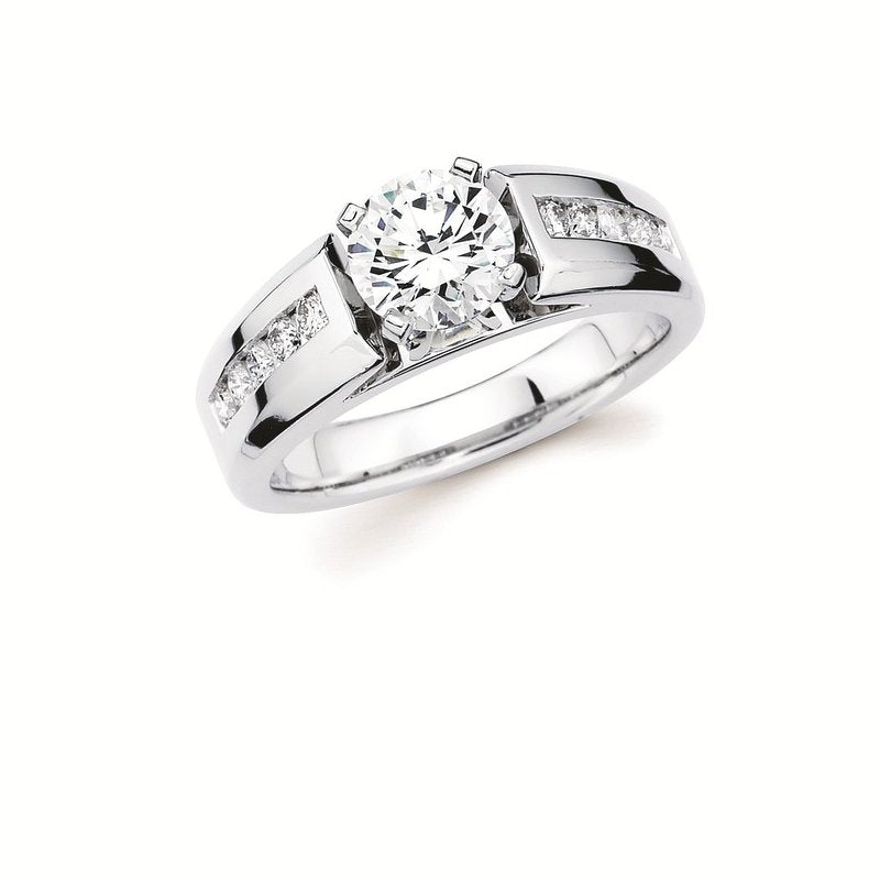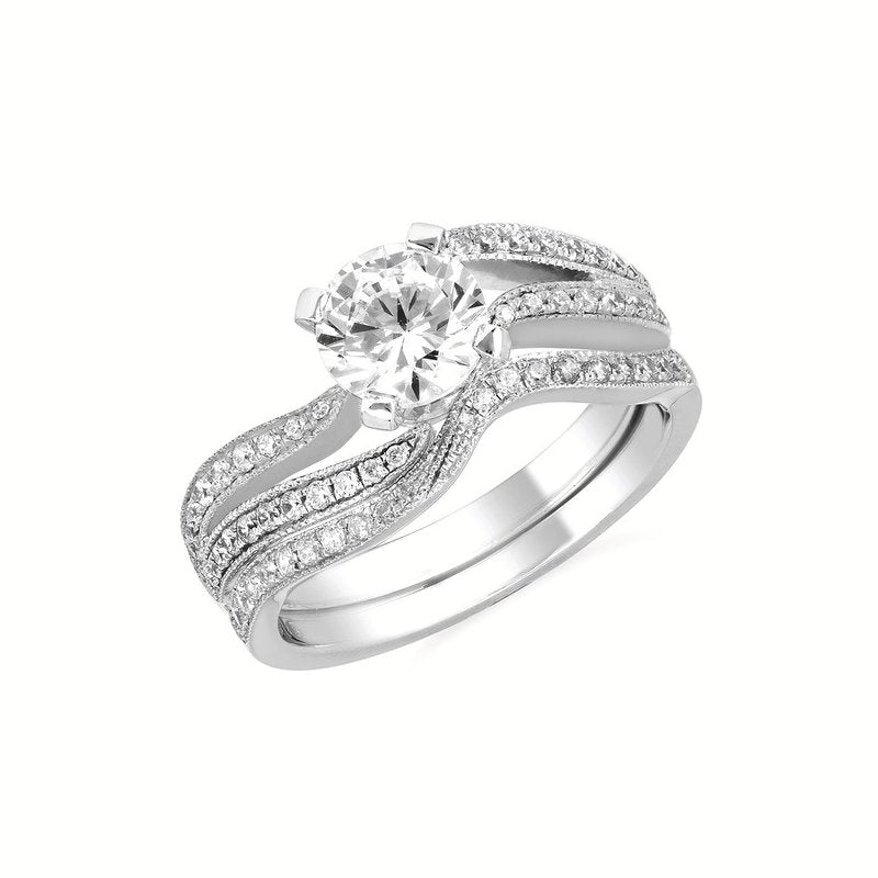 Modern Bridal: 1/4 Ctw. Diamond Semi Mount shown with a 1/2 Ct. Round Center Diamond...