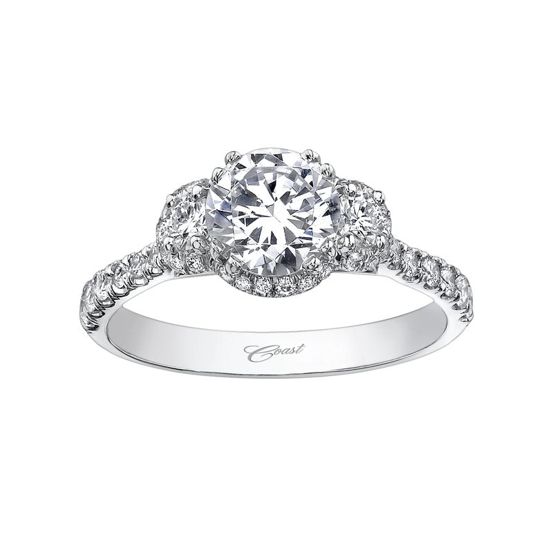 This elegant Charisma ring is crowned by a radiant three-stone centerpiece surrounded by a diamond...