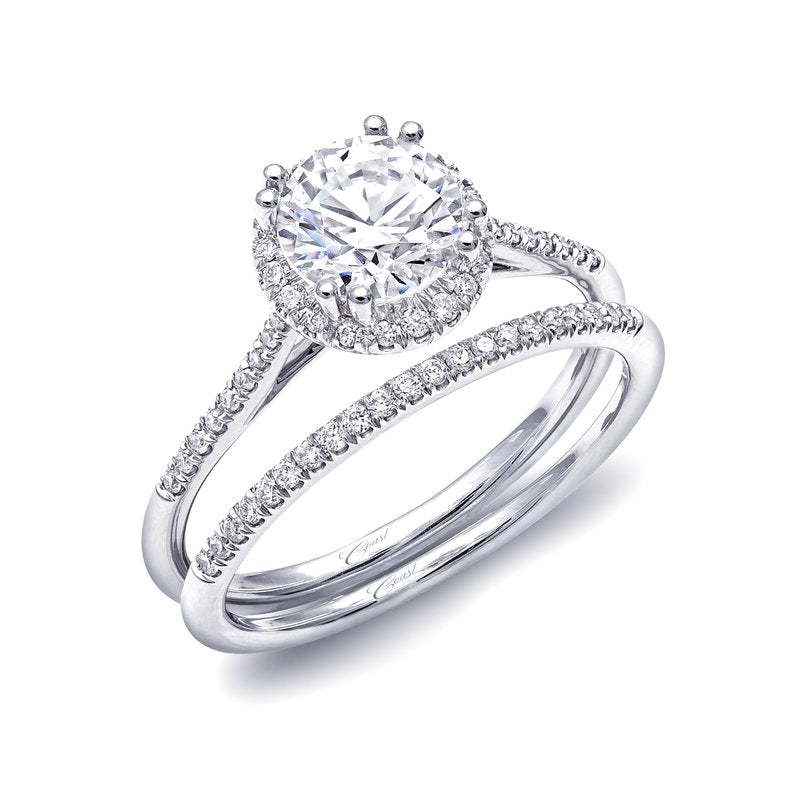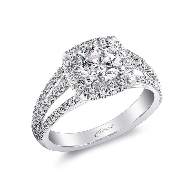 This glamorous ring from the Romance Collection features a cushion shaped halo and split shank,...