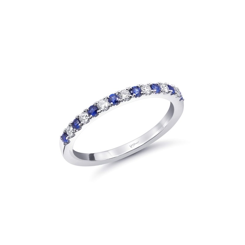 This distinctive band features beautiful microprong set diamonds and sapphires.