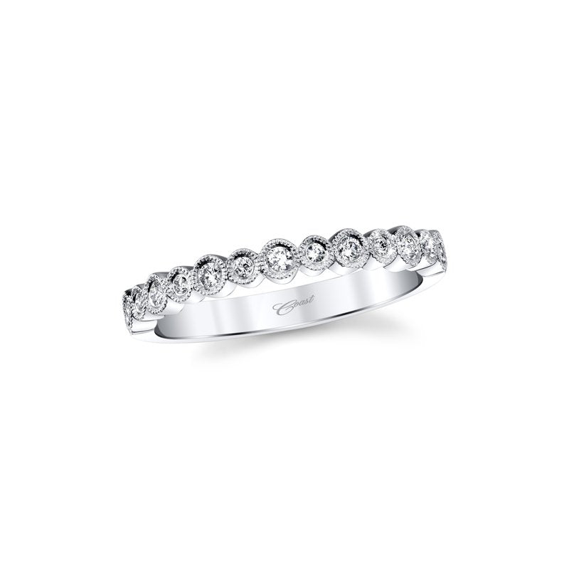 A dazzling band featuring brilliant round diamonds accentuated by milgrain edging.