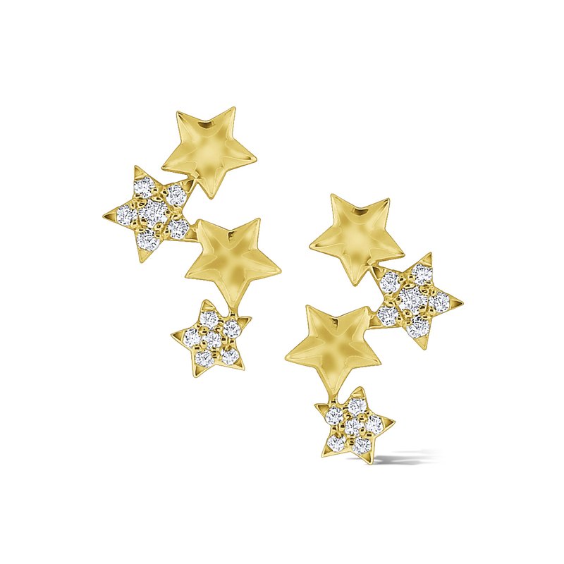 14k Gold and Diamond Star Climber Earrings.