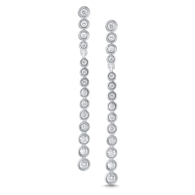 Be a trendsetter with these sleek and elegant earrings. Round brilliant diamonds hang in a...