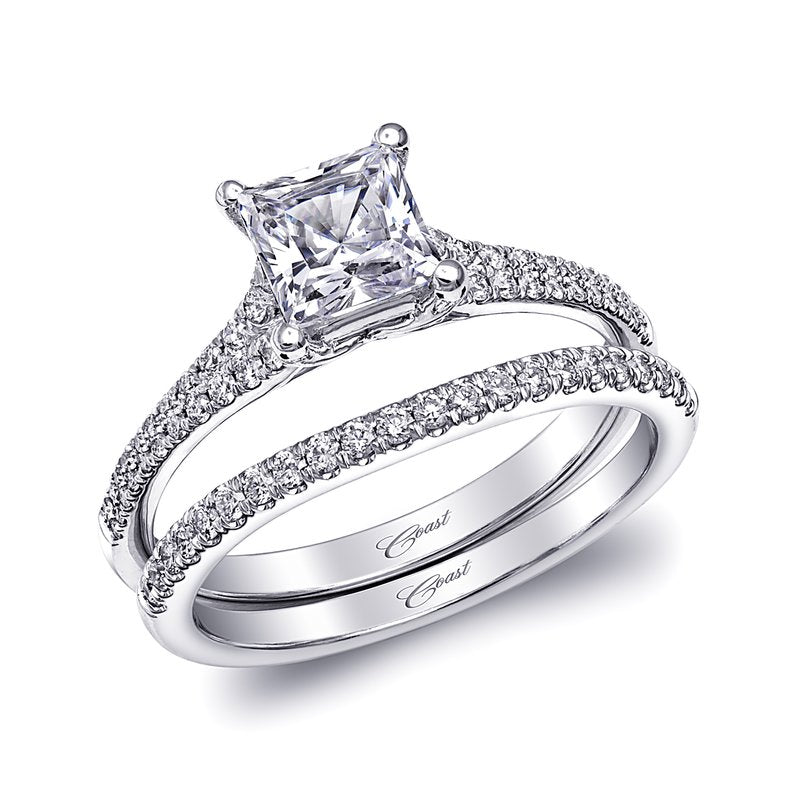 An elegant engagement ring featuring a perfectly tailored diamond shank. Shown with a 5.5mm princess...
