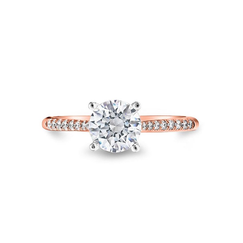 This traditional engagement ring takes on a fresh look when created in rose and white...