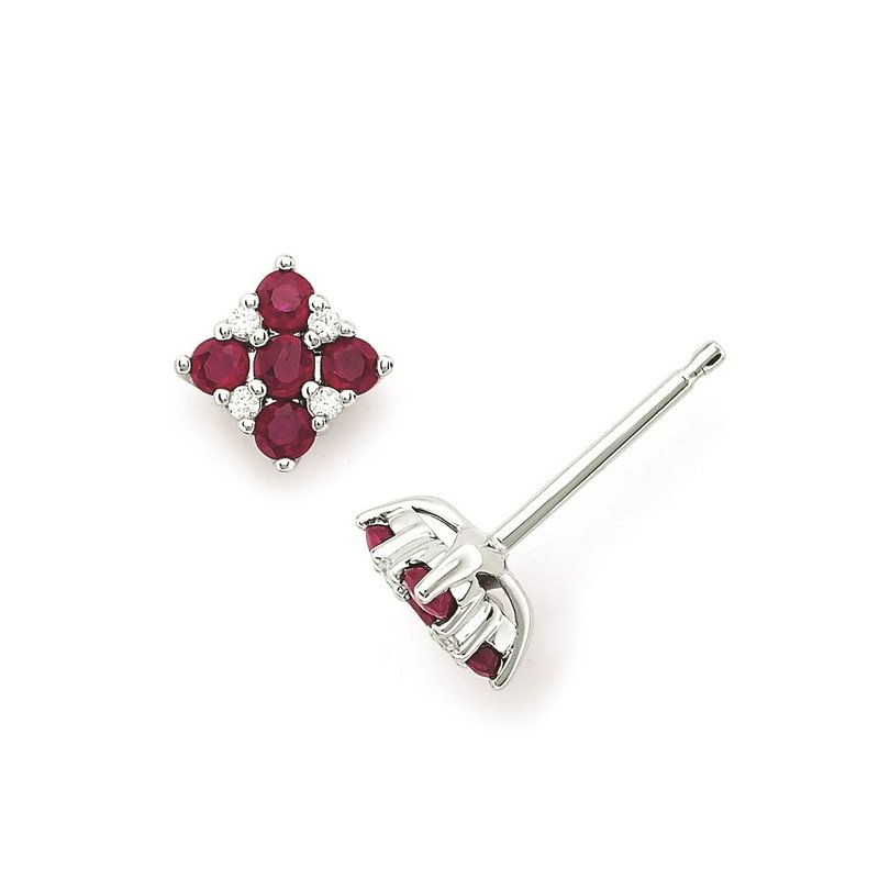 9/10 Tgw. Ruby and Diamond Square Stud Earrings in 14K Gold (Includes .06 Ctw. Diamonds)