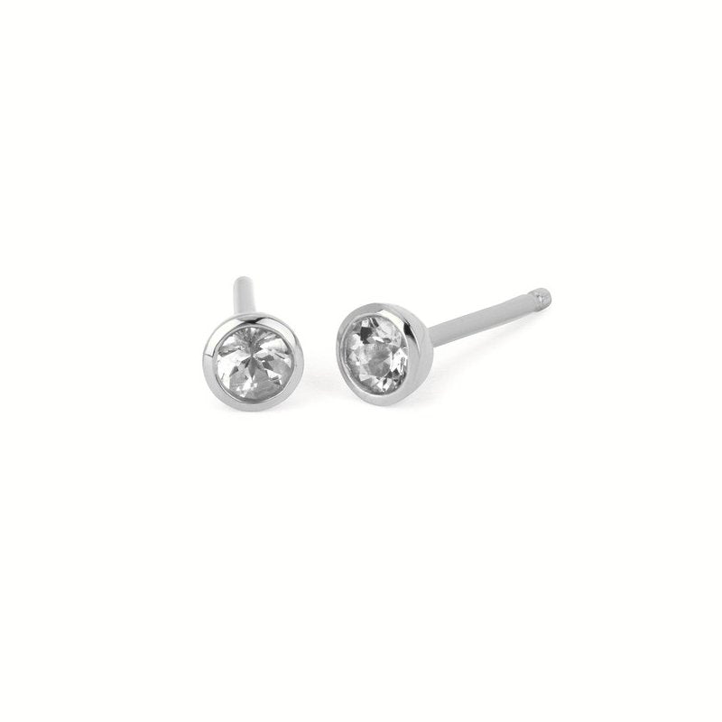 3.5 mm White Sapphire Bezel Birthstone Stud Earrings
