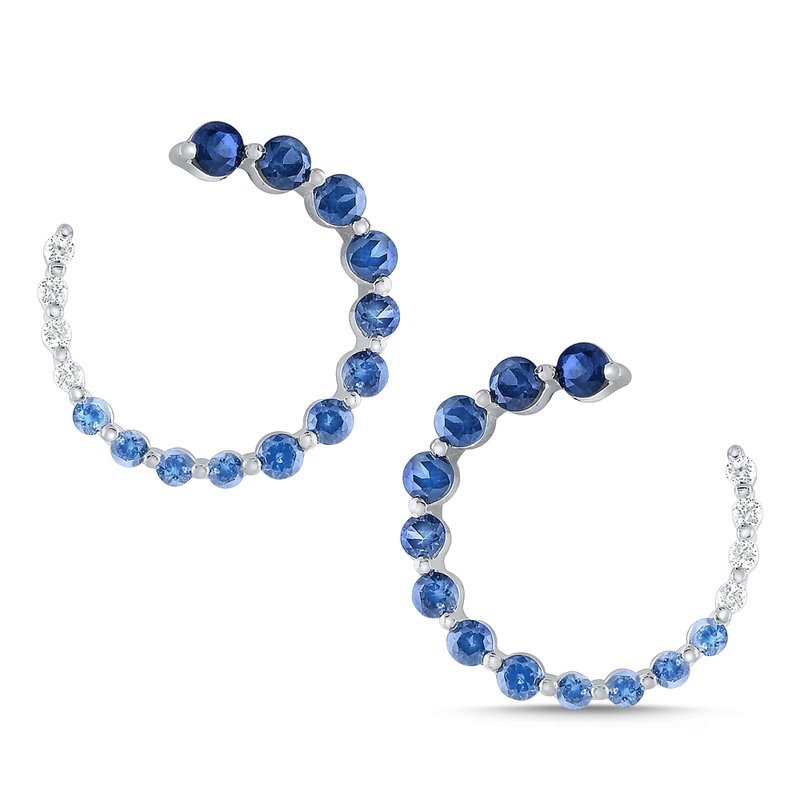 Diamond and Blue Sapphire Ombre Arc Earrings