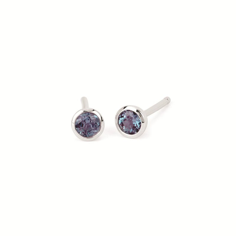 3.5 mm Created Alexandrite Bezel Birthstone Stud Earrings Created Alexandrite Earrings