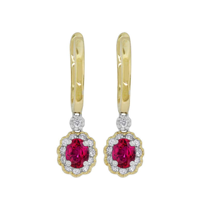 Spark Creations 18k white and yellow gold ruby and diamond earrings with 2 - round...