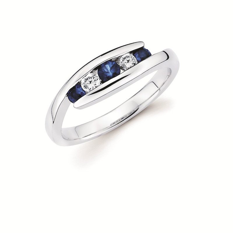 1/8 Tgw. Channel Set Sapphire and Diamond Anniversary Ring in 14K Gold (Includes .07 Ctw. Diamonds)