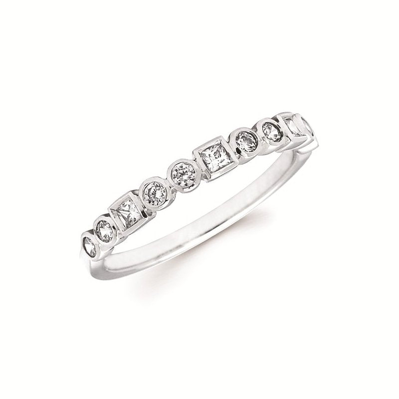 1/3 Ctw. Bezel Set Round & Princess Cut Diamond Stackable Band in 14K Gold