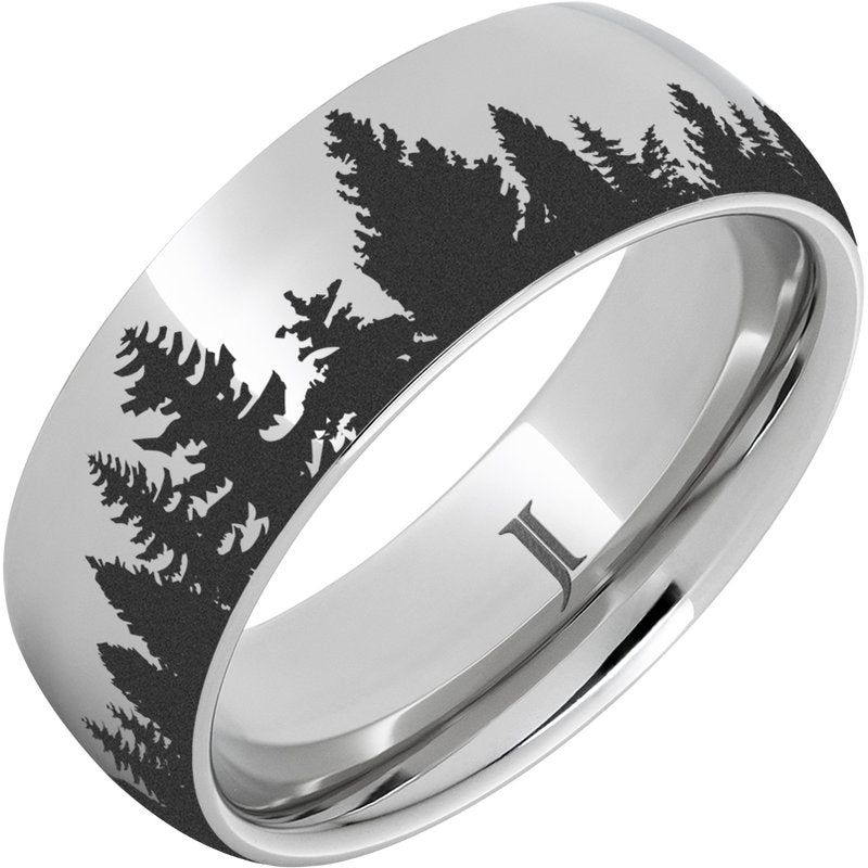 This polished Serinium® ring features a hand carved treebark finish center, for a rugged, textured...