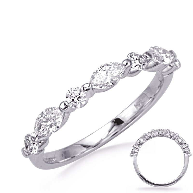 This Band is available in 14K White Gold. There are a total of 6 stones....