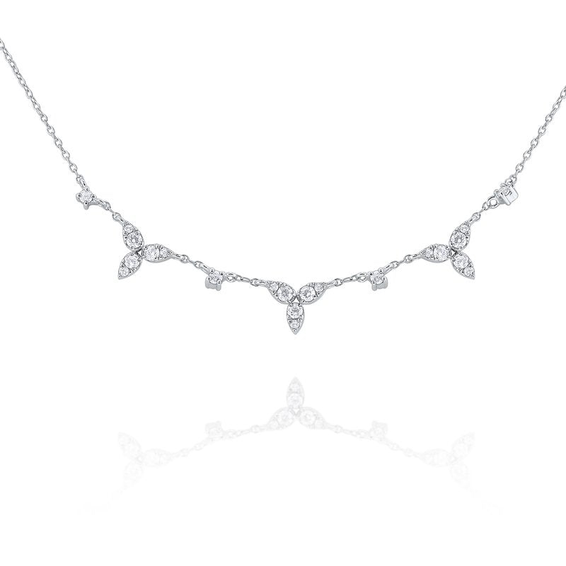 14k Gold and Diamond Floral Inspired Cluster Necklace