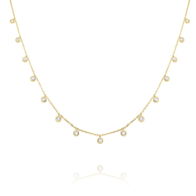 This necklace is available in 14K Yellow Gold. There are a total of 4 stones....
