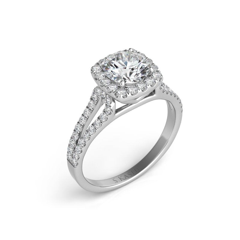 This engagement ring is available in 14K White Gold. There are a total of 54...