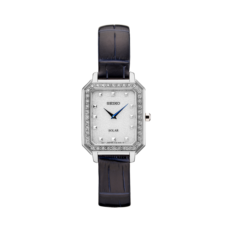From the Crystal CollectionMade with Swarovski® crystalsSilver glitter patterned dialBlue hour and minute handsSolarPowered by...