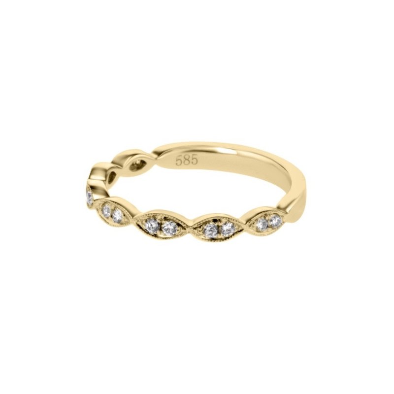 This Band is available in 14K Yellow Gold. There are a total of 14 stones....
