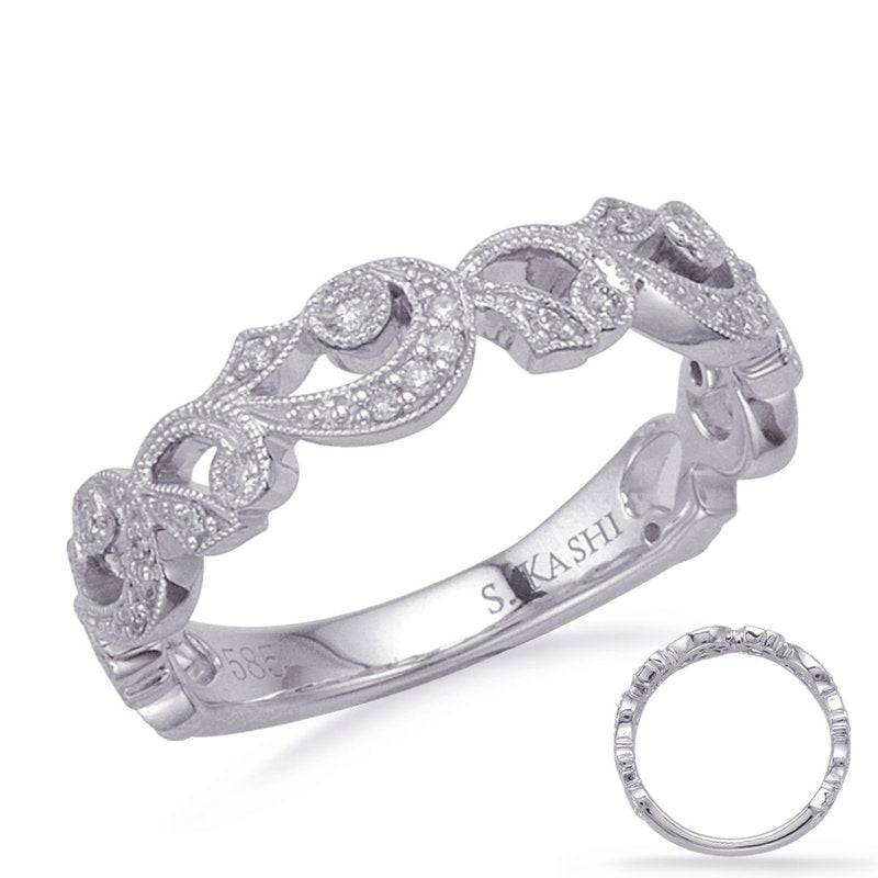This Band is available in 14K White Gold. There are a total of 14 stones....