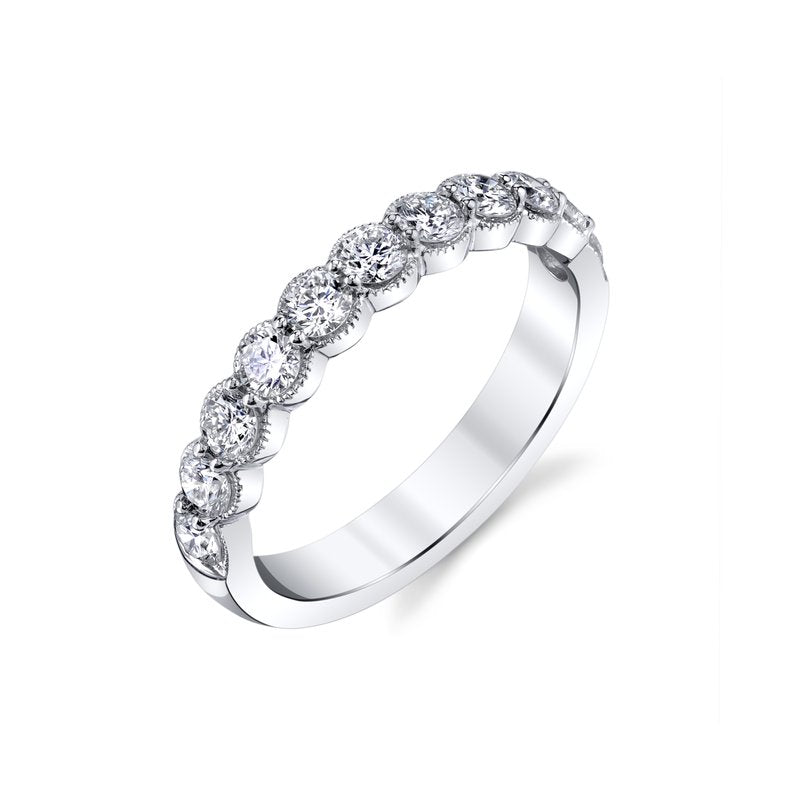 A bold band featuring brilliant round diamonds set within an elegant scalloped design.