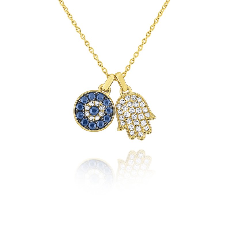 14k Blue Sapphire and Diamond Evil Eye and Hamsa Necklace