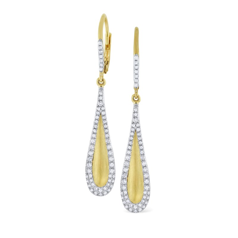 Brushed gold framed by a row of diamonds hang delicately from a diamond accented euro wire.