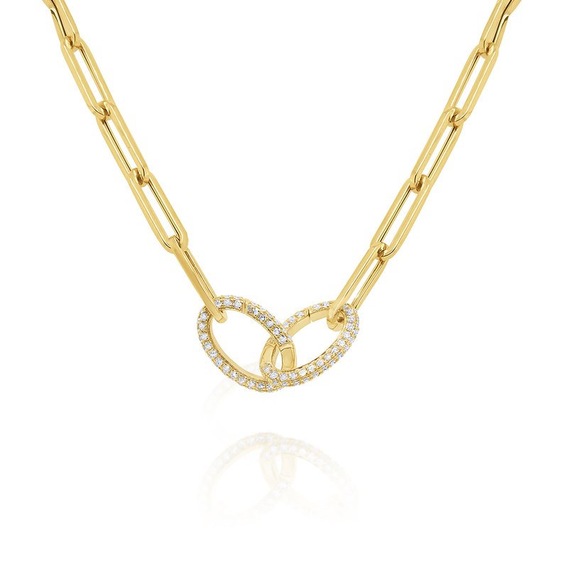 14k Gold and Diamond Double Link Necklace on 18' Adjustable Paperclip Chain