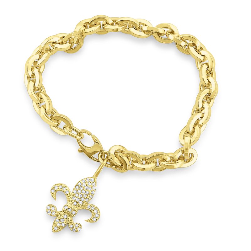 14k Gold and Diamond Fleur de Lis Link Bracelet, Large