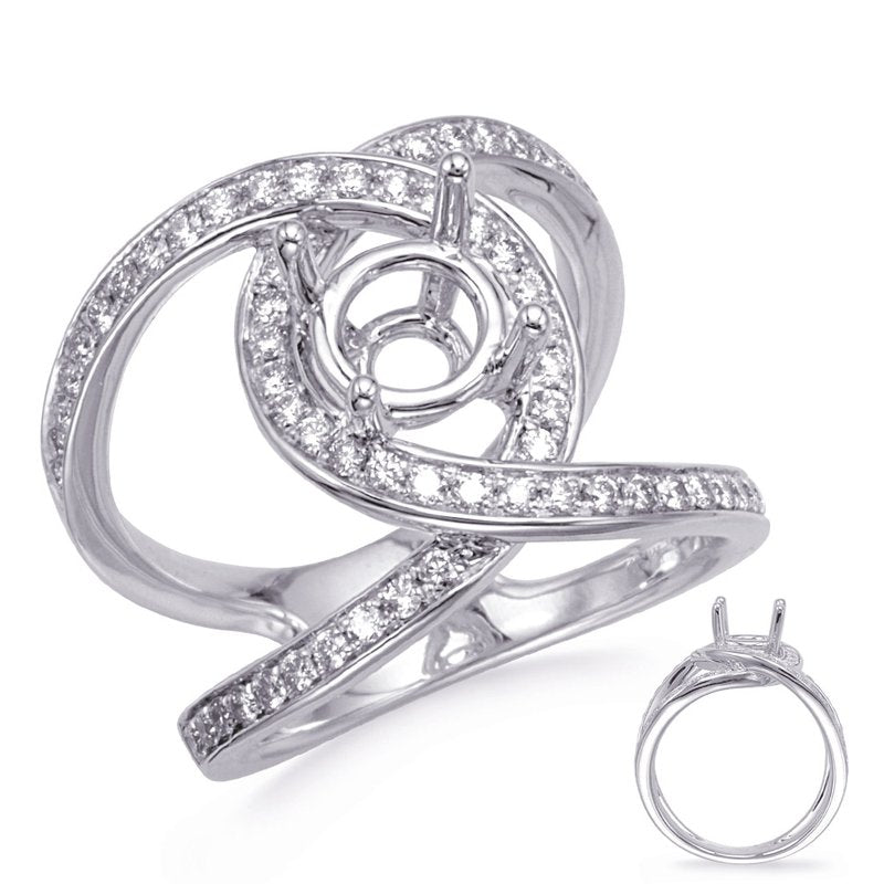 This engagement ring is available in 14K White Gold. There are a total of 70 stones. There are Rounds with a total carat weight of 0.59 set in a Micro Pave setting.None