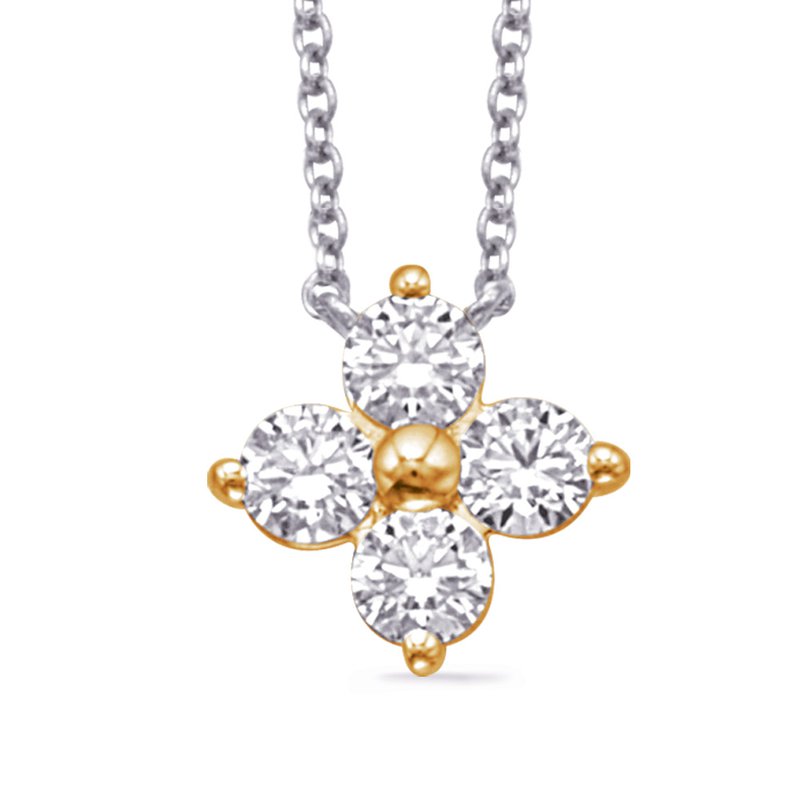 This necklace is available in 14K Yellow Gold. There are a total of 4 stones. There are Rounds with a total carat weight of 0.4 set in a Prong Set setting.None
