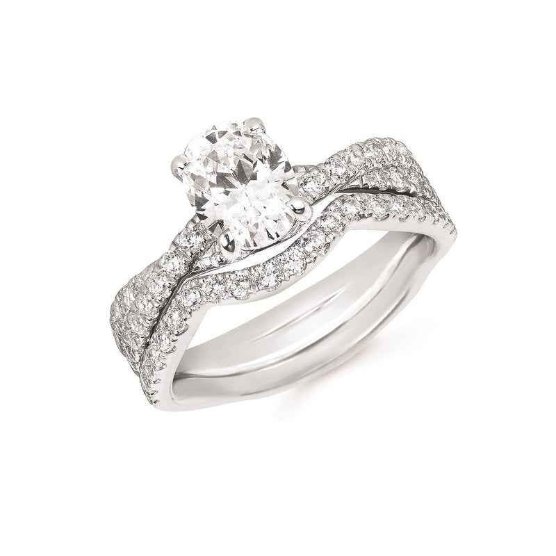 Modern Bridal: 3/8 Ctw. Diamond Semi Mount shown with 1 Ct. Oval Center Diamond in 14K Gold