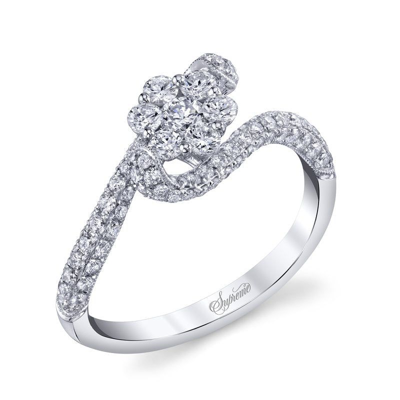 This mesmerizing cluster ring features 1.00 ctw of round brilliant cut diamonds.