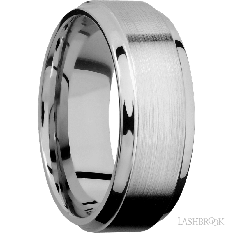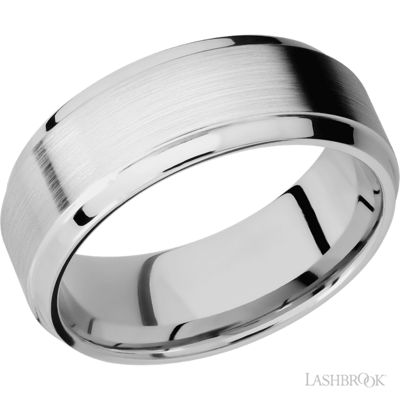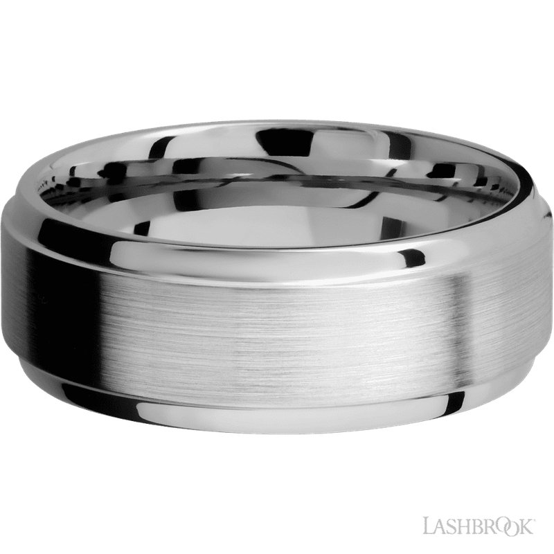 8 mm wide Stepped Bevel 14K White Gold band.