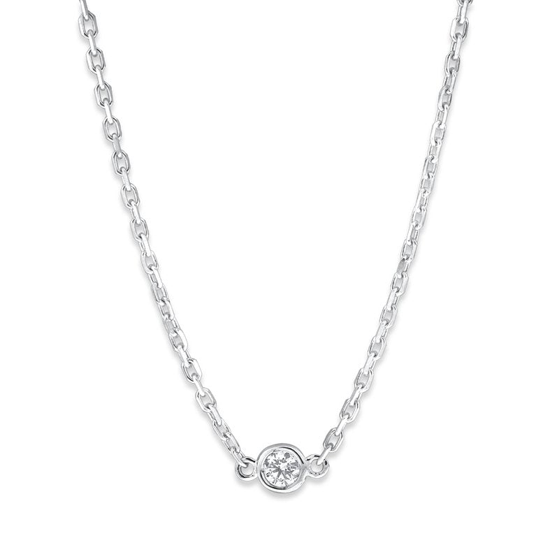 Bezel Set Solitaire Diamond Necklace Set in 14 Kt. Gold