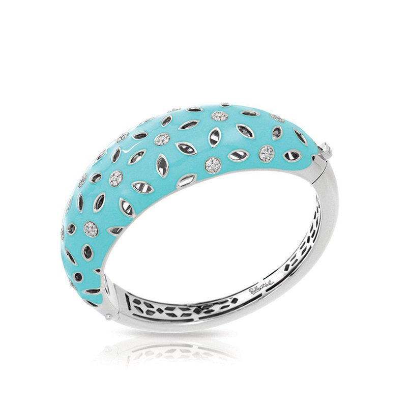 Brighten your day with the sunny and elegant Charlotte collection. This chic and adorable design emulates eyelet lace, in bright yellow and or classic black color palettes and beaming pave-set stones. The Charlotte Collection pays homage to the classic sun dress. Reminisce with the Charlotte Collection.Hand-painted aqua or yellow Italian enamel with pave-set stones set into rhodium-plated, nickel allergy-free, 925 sterling silver.