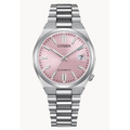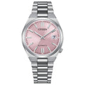 The Tsuyosa Automatic, from the NJ020 series, brings ultramodern sports styling right to your wrist. Executed in a versatile 37mm footprint, the sophisticated design of the watch delivers a strong impression via a silver-tone stainless steel case and a seamlessly integrated matching bracelet. Underneath an anti-reflective sapphire crystal, the sporty timepiece makes use of a sunray pastel pink dial, with a 3 o’clock date window and contrasting silver-tone details adding to its classic configuration. Powered by an automatic movement with a 42-hour power reserve. and offering up to 50 meters of water resistance, the refined timepiece is a daily wearing choice ready for work, play, and everything in between. Caliber 8210.