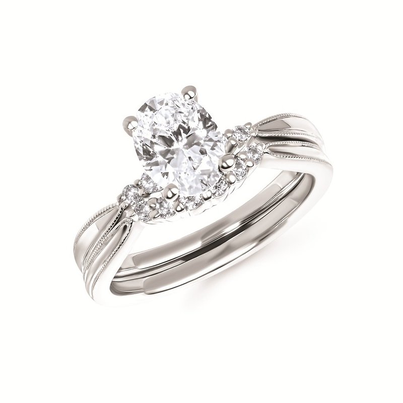 Classic Bridal: 1/8 Ctw. Diamond Semi Mount shown with 1 Ct. Oval Center Diamond in 14K Gold