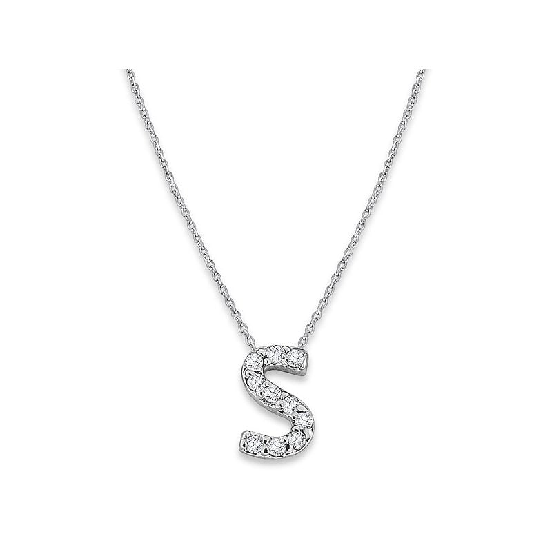 Diamond Baby Typewriter Initial 'S' Necklace in 14k White Gold with 10 Diamonds weighing .06ct tw.