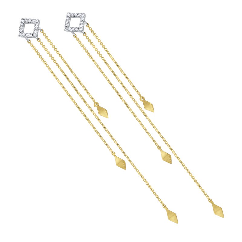 Diamond Hanging Chain Earrings Set in 14 Kt. Gold