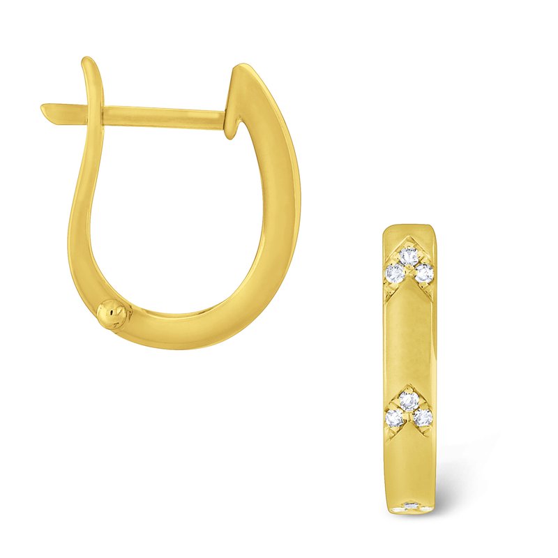 Diamond Mini Hoop Earrings Set in 14 Kt. Gold