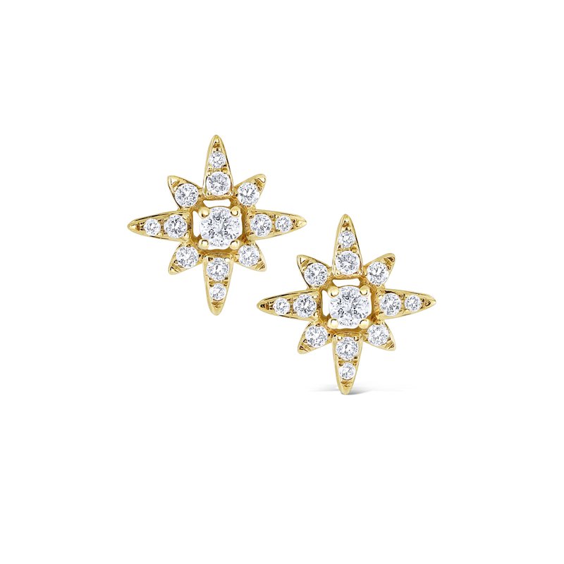 Be a shining star in these dazzling starburst earrings! 26 round brilliant diamonds sparkle in 14 Kt. yellow gold starburst settings that evoke a chic, celebratory feeling.