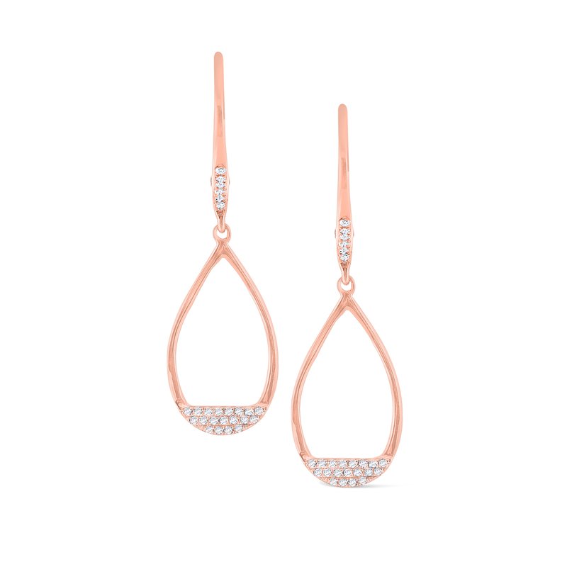 These teardrop frame earrings feature a fun & modern accent of diamonds at the bottom and in a line on top. 52 shining diamonds, weighing 0.16ct tw, shown here in 14 Kt. rose gold, make the perfect accessory for any hairstyle.